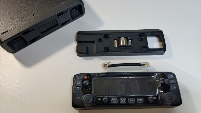無線機本体と操作部(コントローラー)を分離することが出来る機種が増えたのは昭和から平成に変わる頃だったように思うのですが間違っているかもしれません。今ではこれが当たり前になっていますので、無線機本体は助手席のシートの下やトランクルーム内などに設置して、操作部のみを運転席周辺に取り付けるのが基本となっていて、近年のアイコム製品では無線機本体と一体化するブラケットはオプションとなっています。
