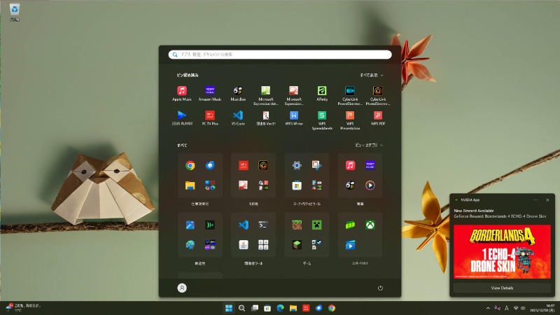 尚、右端に出ているのはNVIDIAアプリからの通知で、スクリーンショットを撮ったタイミングでたまたま出たものですので気にしないでください。