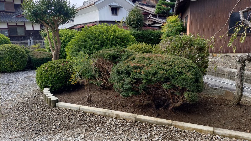 また、イチイの木があった場所にはもう少し左側にあった南天の木を移植して全体的なバランスを整えました。空いたスペースの活用方法はまた考えたいと思います。