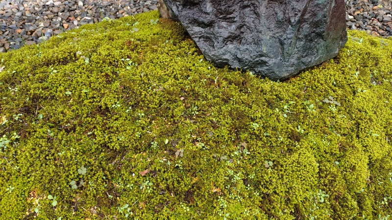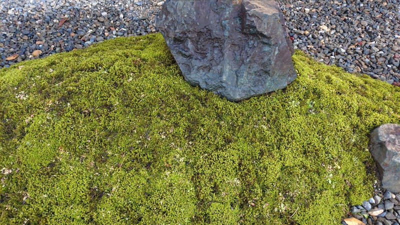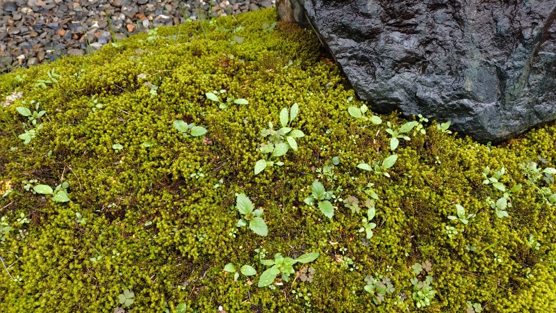 最後の写真はスナゴケを貼った場所全体を写したものです。これまでは雑草がかなり目立っていましたが、今では気にならない状態になり、これでようやく雑草との戦いが終わった感じです。