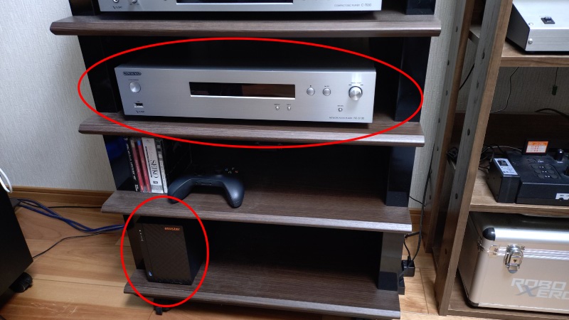 この写真の上の赤い丸印がネットワークプレーヤーのONKYO NS-6130になります。購入したのは7年ほど前の2018年3月ですが、それ以降、自宅内のLANへの接続にはWi-Fiを使ってきました。