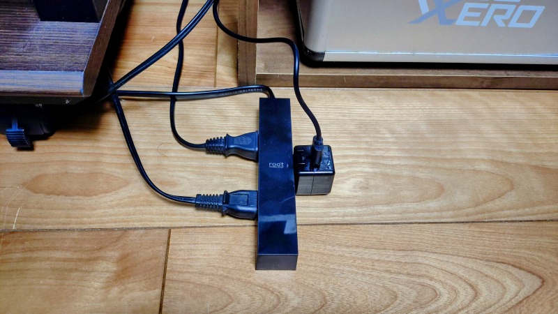 そしてもう一つが電源タップです。エレコムのルオット(roo’t)という商品で、インテリアに溶け込む魅せるデザインタップとして販売しているものです。Amazonで1,036円でした。
