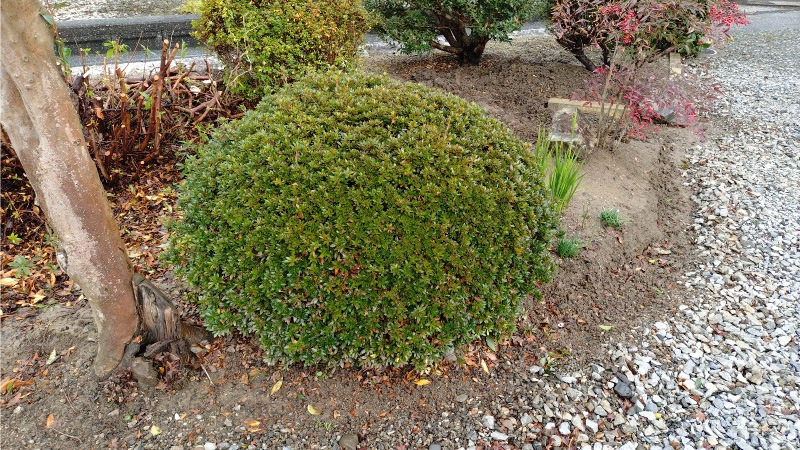 全体の整地は全ての伐根作業が終わってからになりますが、ツツジやサツキ、イチイの木の伐根が進んだことでかなりスッキリとした感じになってきました。残るのはサザンカの木の撤去とツツジの伐根になりますが、ここから先が最も大変な作業になりそうです。
