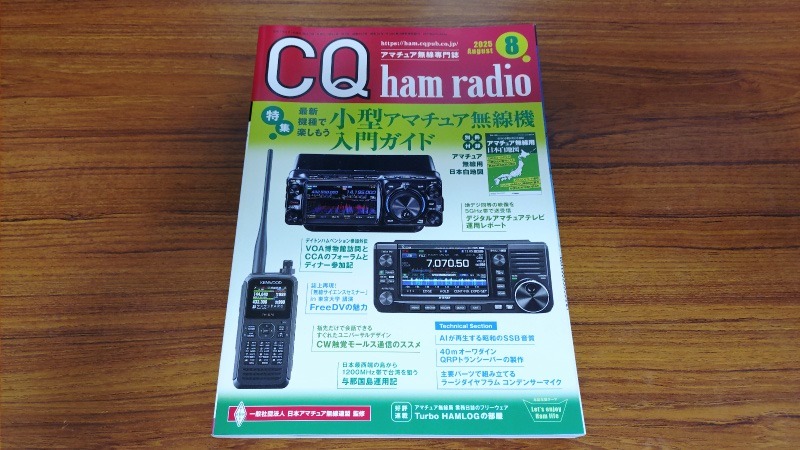こちらの写真はアマチュア無線の専門誌、CQ ham radioになります。中高生の頃は毎月購入していた記憶が残っています。昨年の夏、古い免許状を発見して数十年前の記憶が蘇り、今ではどんな状況なんだろうと思って購入してみたのがこの8月号になります。