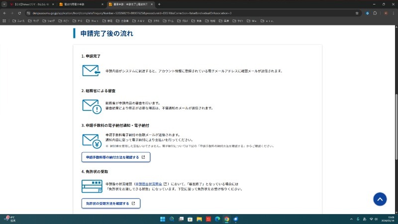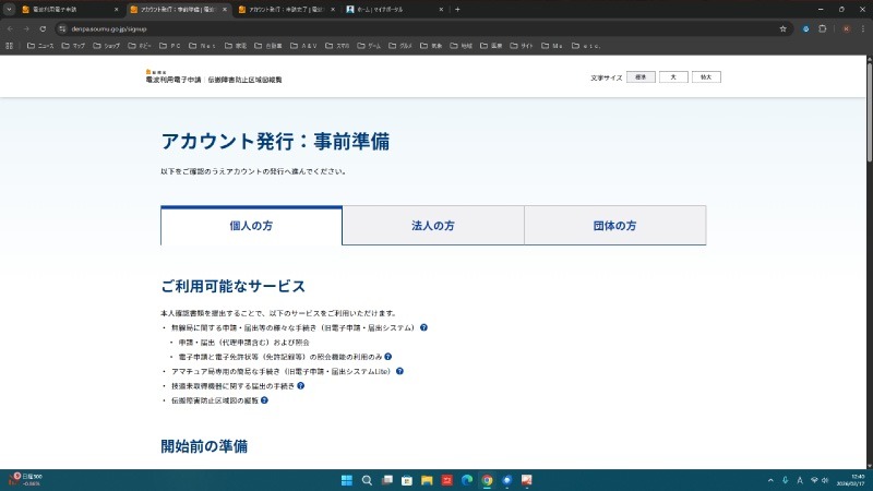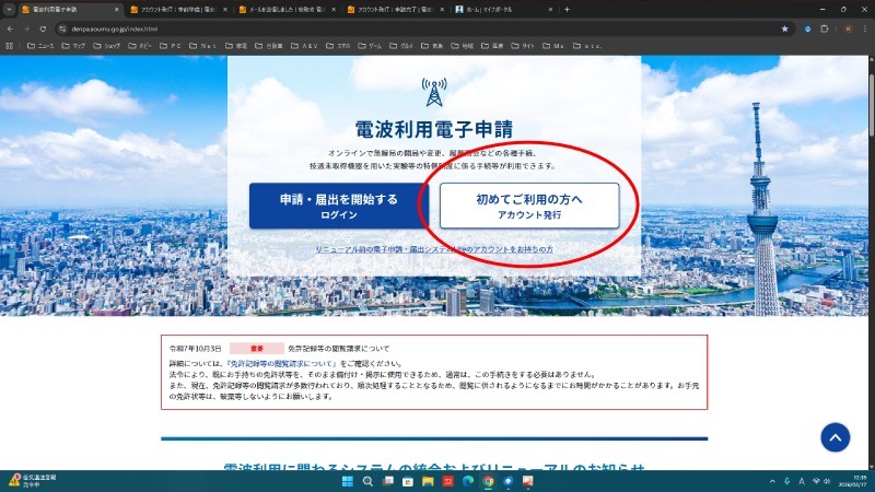 では、とりあえずハンディトランシーバーではありますが、無線機が手に入って開局手続きに進める状態になりましたので、電波利用電子申請の画面から手続きをしてみます。