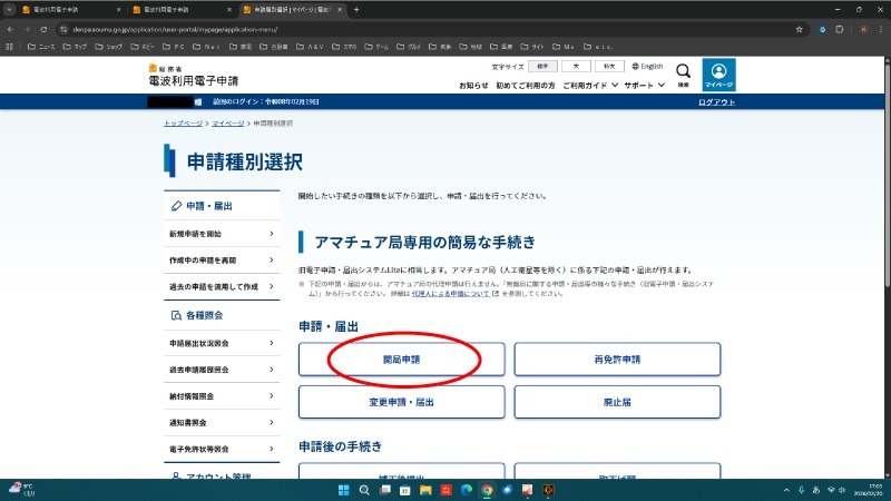 この電波利用に関わるシステムは昨年から統合、リニューアルされたそうで、アマチュア局専用の簡易な手続きも全てここから行うようです。