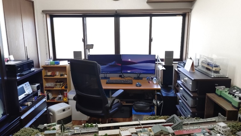 昨年、部屋の中のレイアウト変更についてご紹介した時にも同じような写真をお見せしたかと思いますが、最近の無線機ではパソコンやスマートフォンとUSBケーブルで接続して使用したり、LANケーブルを接続して使用する機器もあるようですので、可能ならこの写真の右側にあるオーディオラックの背面辺りにアンテナからの同軸ケーブルが引き込めれば理想的です。