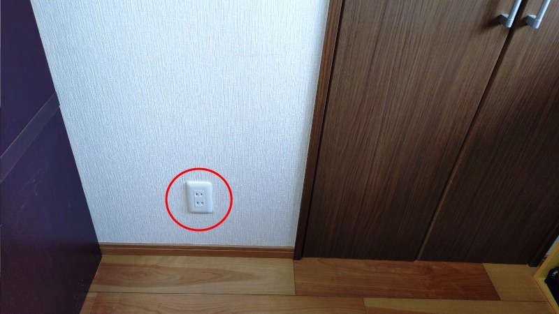 尚、先ほども書いたとおり本当はパソコンとUSBケーブルで接続することが可能な位置が理想なのですが、ここはパソコン本体を置いている場所との間に写真の右側に写っている収納扉がありますので、接続する場合は収納の前の床面にケーブルが露出してしまうのが残念なところです。