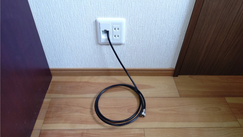 こちらが作業後の状況になります。作業前はコンセントだけだった場所に同軸ケーブルを引き込むことが出来ました。自己満足の世界ですがなかなか上手く行ったと思います。