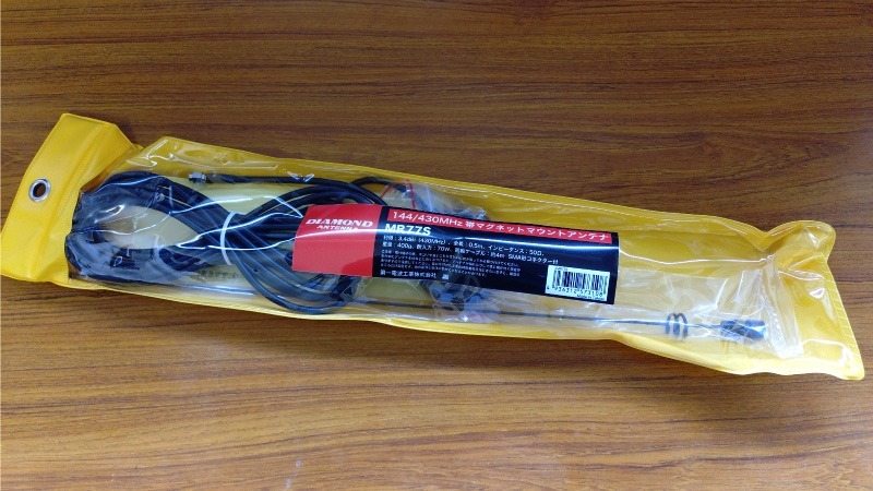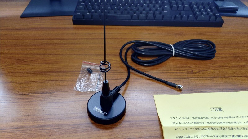 新たに購入したのはダイヤモンドアンテナのMR-77Sという型番の製品で、車に磁石で固定出来るマグネット基台に同軸ケーブルやアンテナ本体がセットになったものになります。