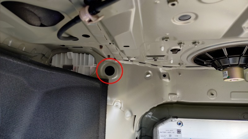 トランクルーム内を良く確認してみたところ、反対側の同じ位置にも同様のグロメットがありますので、車内側から改めて確認した上でどちらを使用するのか決めたいと思います。