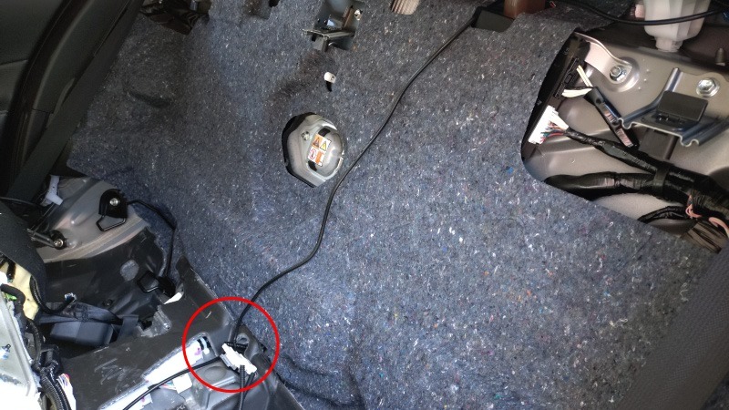 また青い丸印のところにはシートヒーターやベンチレーター、エアコンやオーディオのリモコン用と思われるケーブルが接続されていましたので、ここのコネクタも外してやりました。