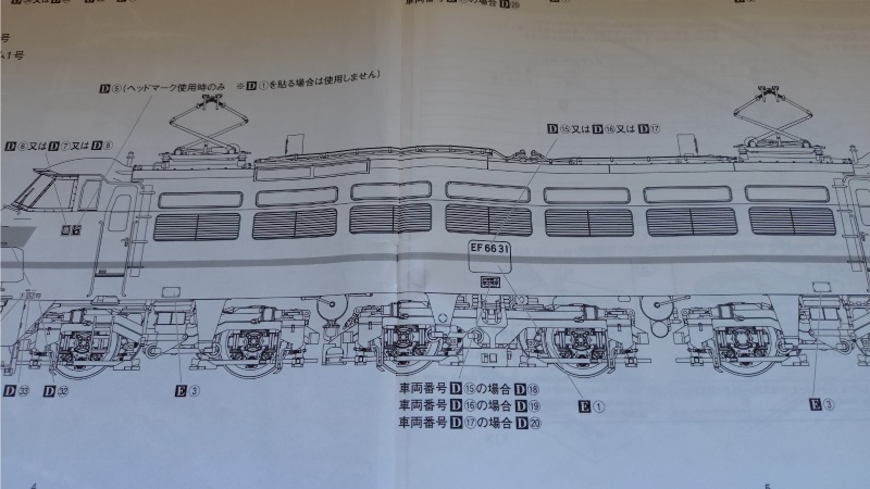 説明のないものはこのページの側面図を参考にするしか方法がありません。この図中のDの文字は使用するデカールを、Eの文字はエッチングパーツの取り付けを示しているそうですので、この図を見て組み立てを行うことは誤りではないようです。