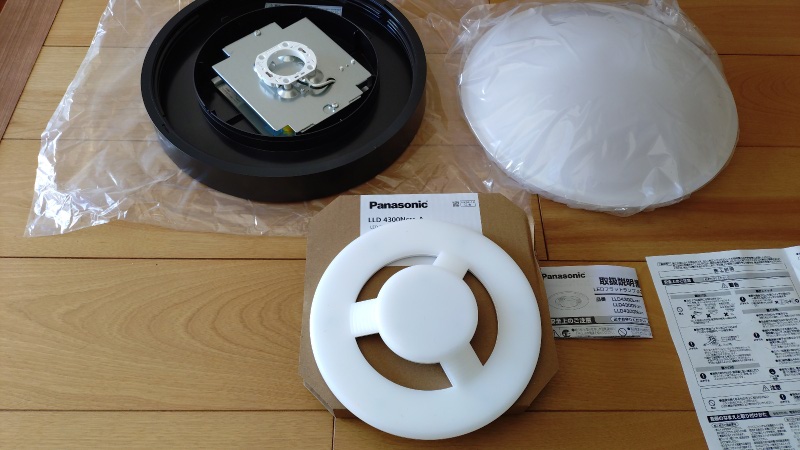 アイリスオーヤマの照明器具ではこのアダプターが省略されており、器具本体をそのまま引っ掛けシーリングに取り付けるようになっていますが、確かに作業手順としては少なくなるものの、アダプターがある方が作業も楽ですし、取り付け作業時の安全性も高いと感じます。
