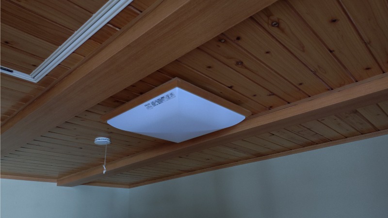 この部屋の床はフローリングで洋室になるのですが、天井や壁などは和風の造りになっていますので、雰囲気は変えずに既設のものと同じような木枠の器具を選定しました。