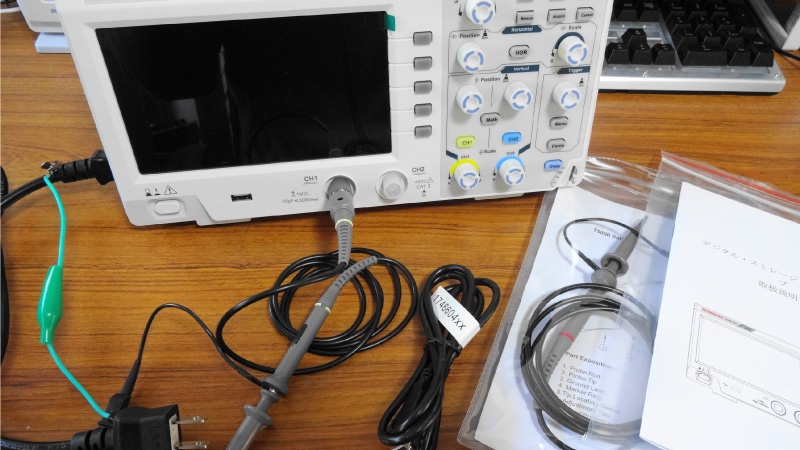 パネル面のデザインが全く同じで仕様も同等の製品が他メーカーからも販売されており、OEM製品なのかパネルやツマミなどの外装品のみ製造元が同じなのか詳細については分かりませんが、この製品がAmazonでは最安値だったと思います。付属品のプローブもシッカリしたもので悪くはありませんし、電源コードもアース線付きの日本仕様のものが入っていました。