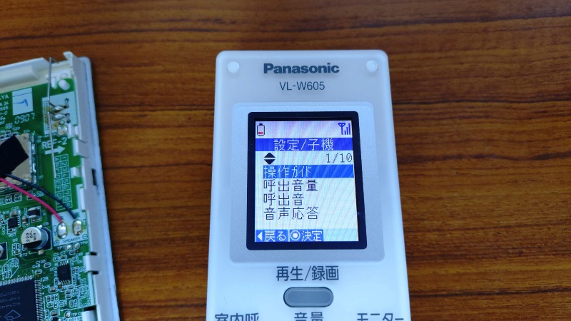 中身が正常な製品に変わったので当たり前ではありますが、こちらの写真のように液晶表示も無事に復活しました。新しい子機ということでモニター親機への登録作業が必要になりますが、こちらも問題なく終了し、玄関のモニター映像も綺麗に表示されるようになりました。