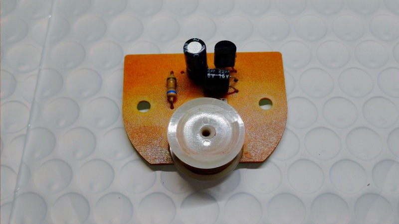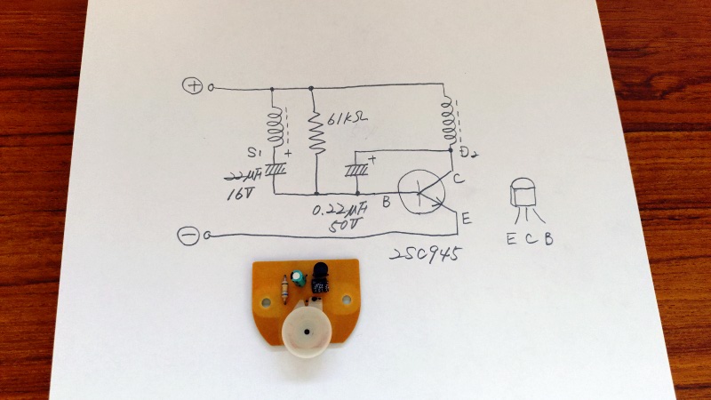 この駆動回路の動作原理は良く分かりませんでしたが、電解コンデンサの充放電を利用してトランジスタでコイルへの電流を制御しているようだったので、とりあえず電解コンデンサを新品に換えて動作状況を確認してみたいと思います。
