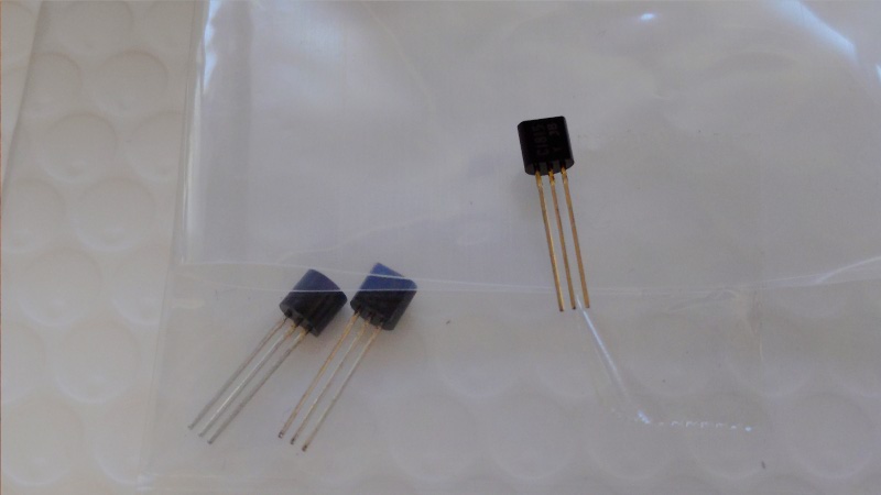使用されているトランジスタは2SC945ですが、これと互換性があると考えられる2SC1815が3個残っていましたので、こちらを活用することにしました。このトランジスタは自作したドローンのLEDライトを制御するために随分前に購入したものの残りです。
