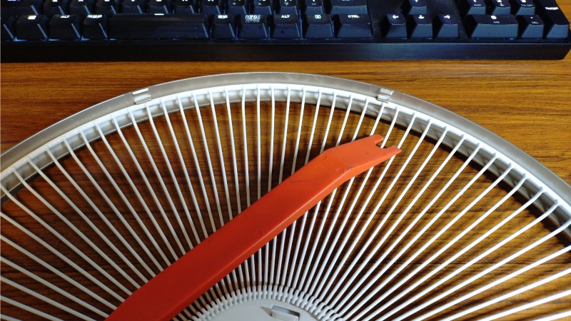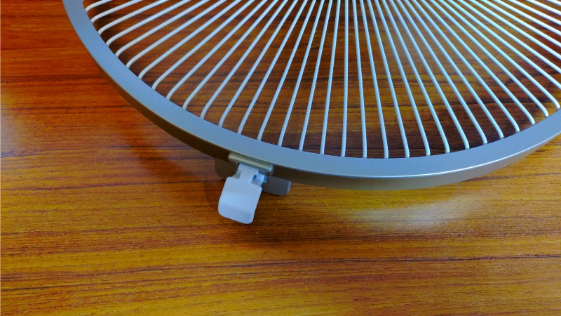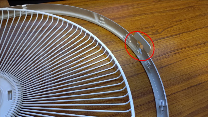 他のメーカーの扇風機もこの前面ガードの固定方法は概ね同じような構造で、それなりに力を加えないとクリップを嵌めたり外したりすることが出来ないのですが、見た目は折れないのが不思議なくらいひ弱なパーツです。