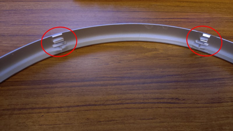こちらの写真が交換作業を終えたガードクリップになります。クリップ自体はガードリングに嵌め込むだけですので簡単なのですが、その後、このガードリングに前面ガードを取り付けるのに少々手間を要してしまいました。