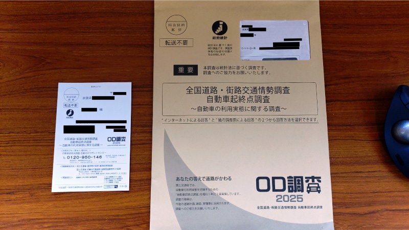 先月初めに国勢調査の回答が終わったばかりですが、このOD調査も5年に一度だそうで、対象者は自動車登録情報から地域や車種のバランスを考慮して無作為に抽出しているそうです。