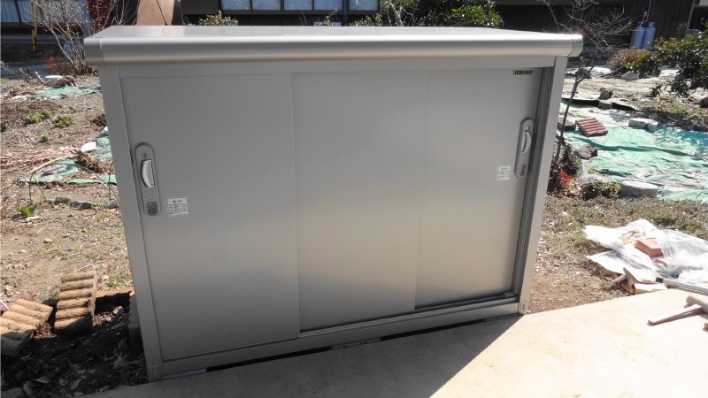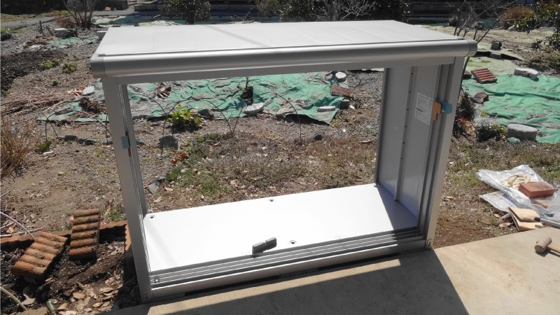 扉の色はシンプルな感じのスノーシルバーを選択しましたが、本体と同じ色ということで組み上がってみると少し地味な感じがしないでもありません。まあ、後ろの風景がお隣さんの畑ですので、扉の色を気にするような場所でもないでしょうし、すぐに意識しなくなってしまうのではないかと思います。