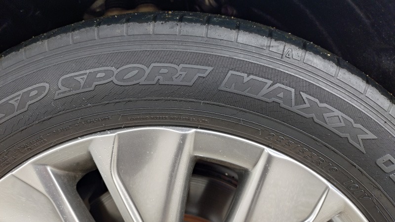 新車時からこのミライに装着されていたのは、ダンロップのSP SPORT MAXX 050というタイヤになります。サイズは235/55R19となっています。